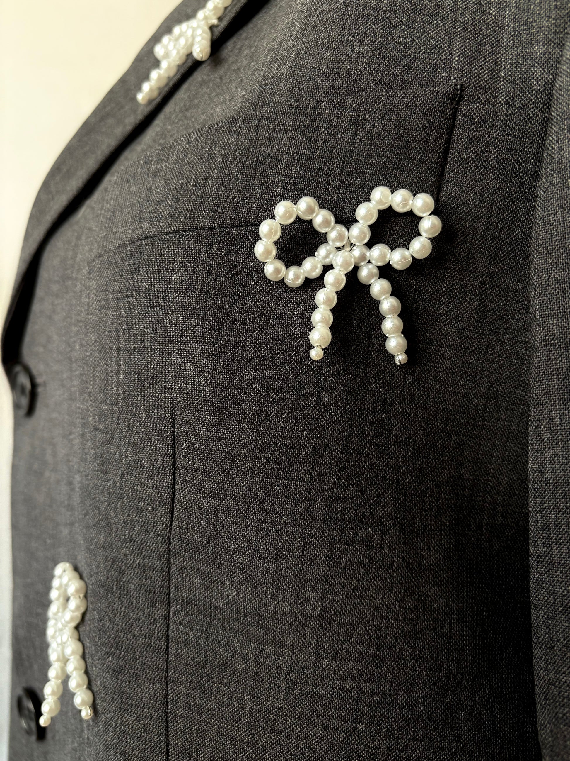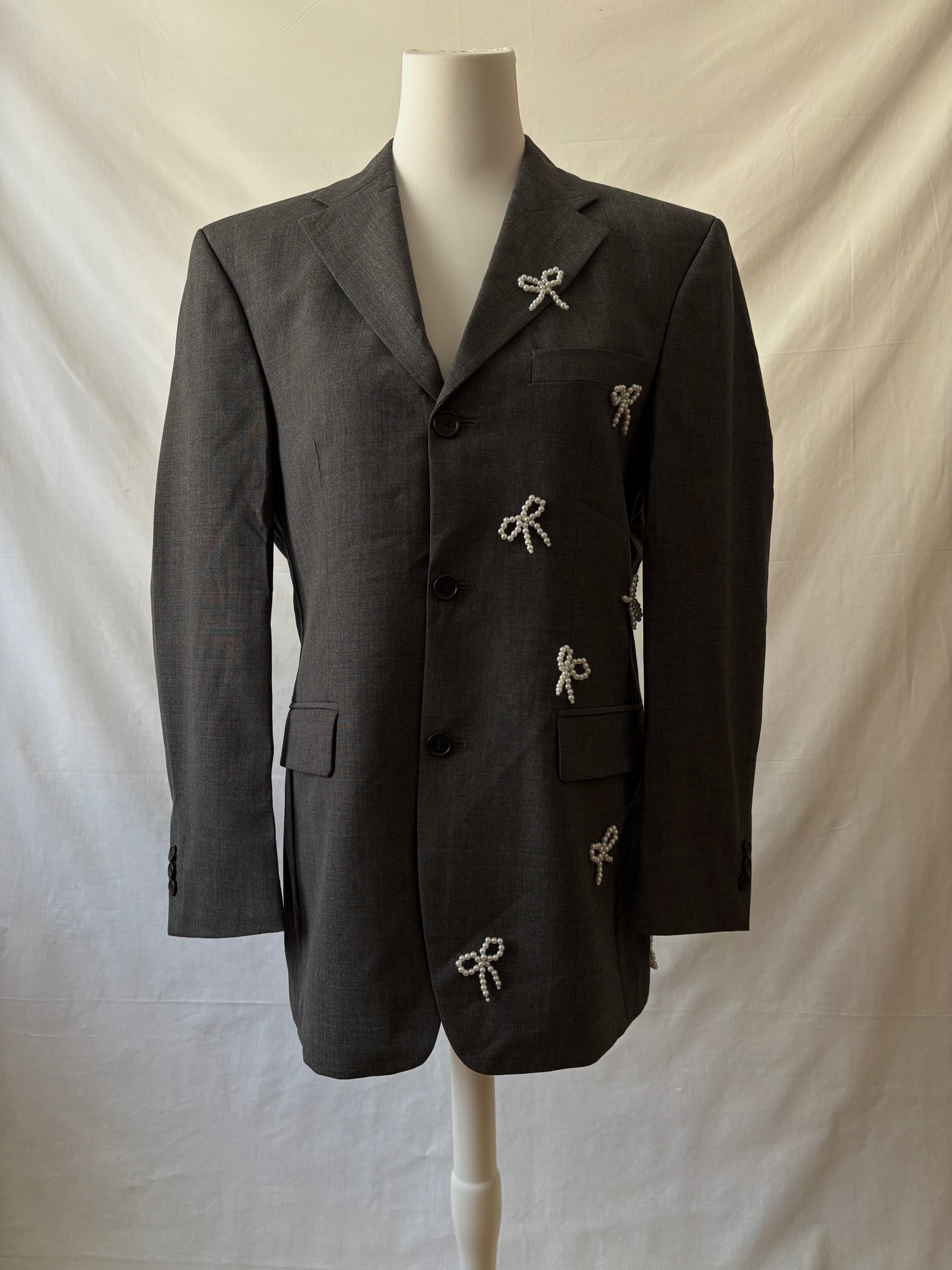 Rielaborazione fatta a mano con applicazioni di piccoli fiocchi creati con perline bianche