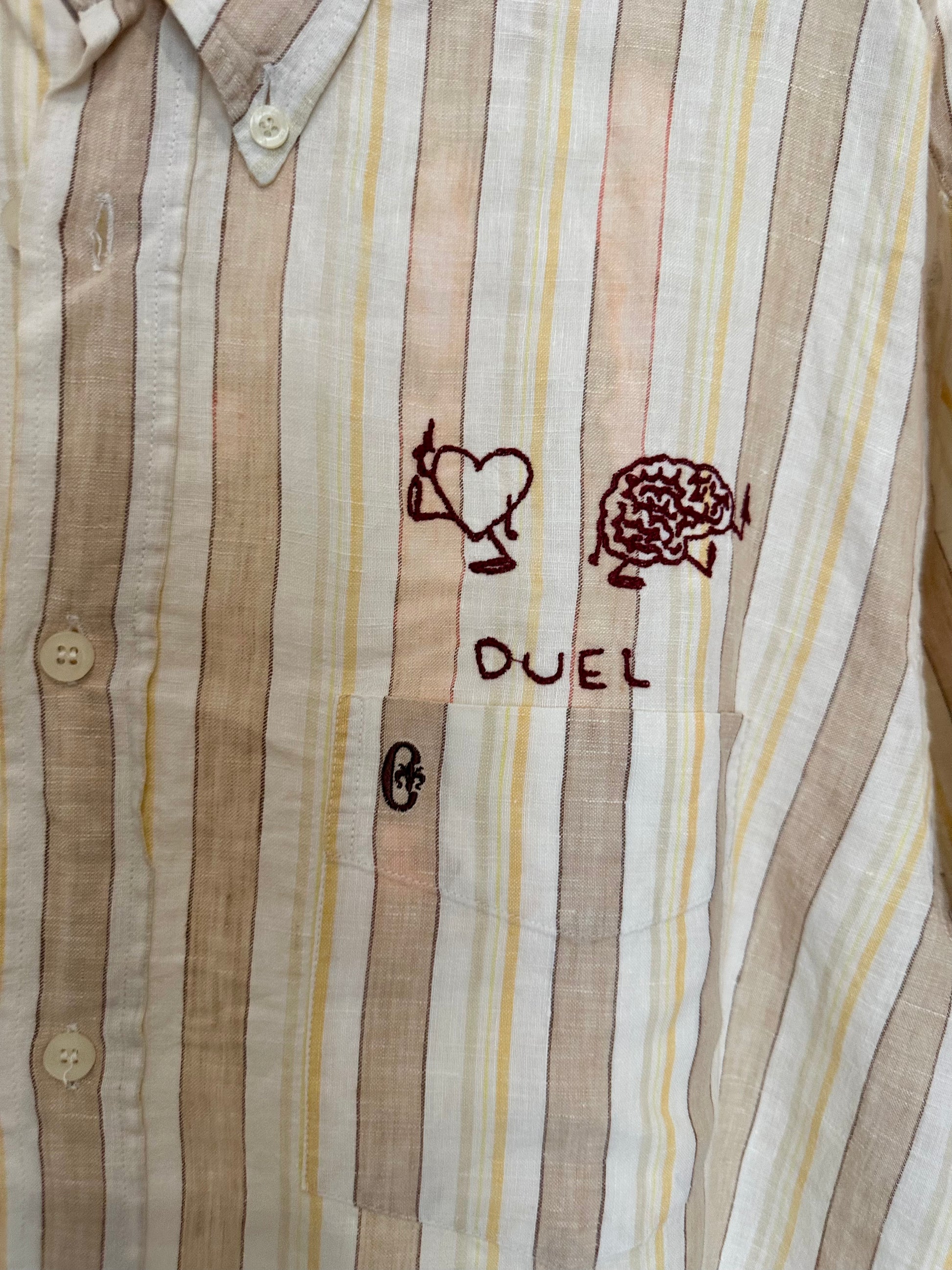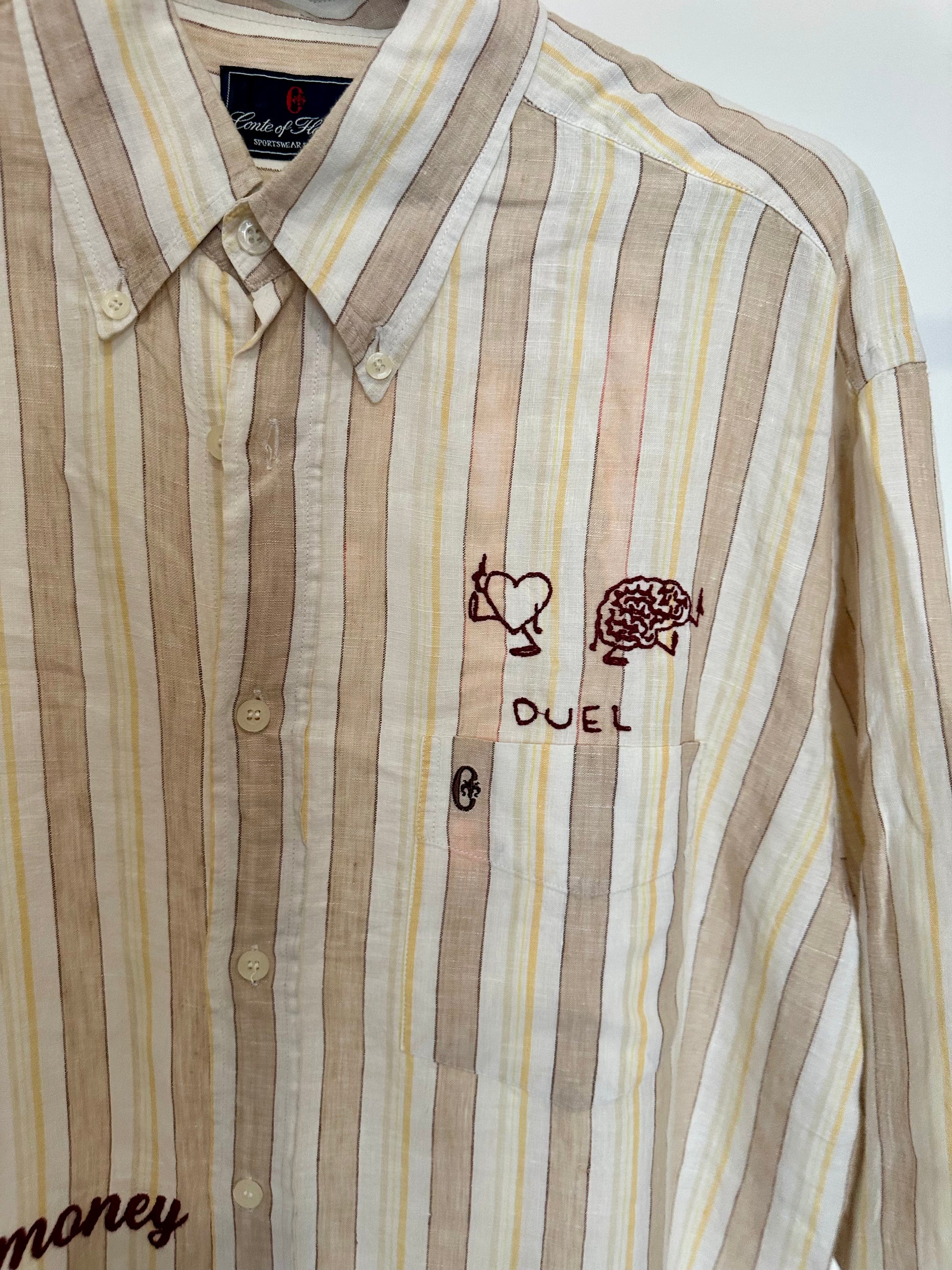 Rielaborazione con scritta "Need money for therapy" e disegno duello cuore e cervello sul fronte