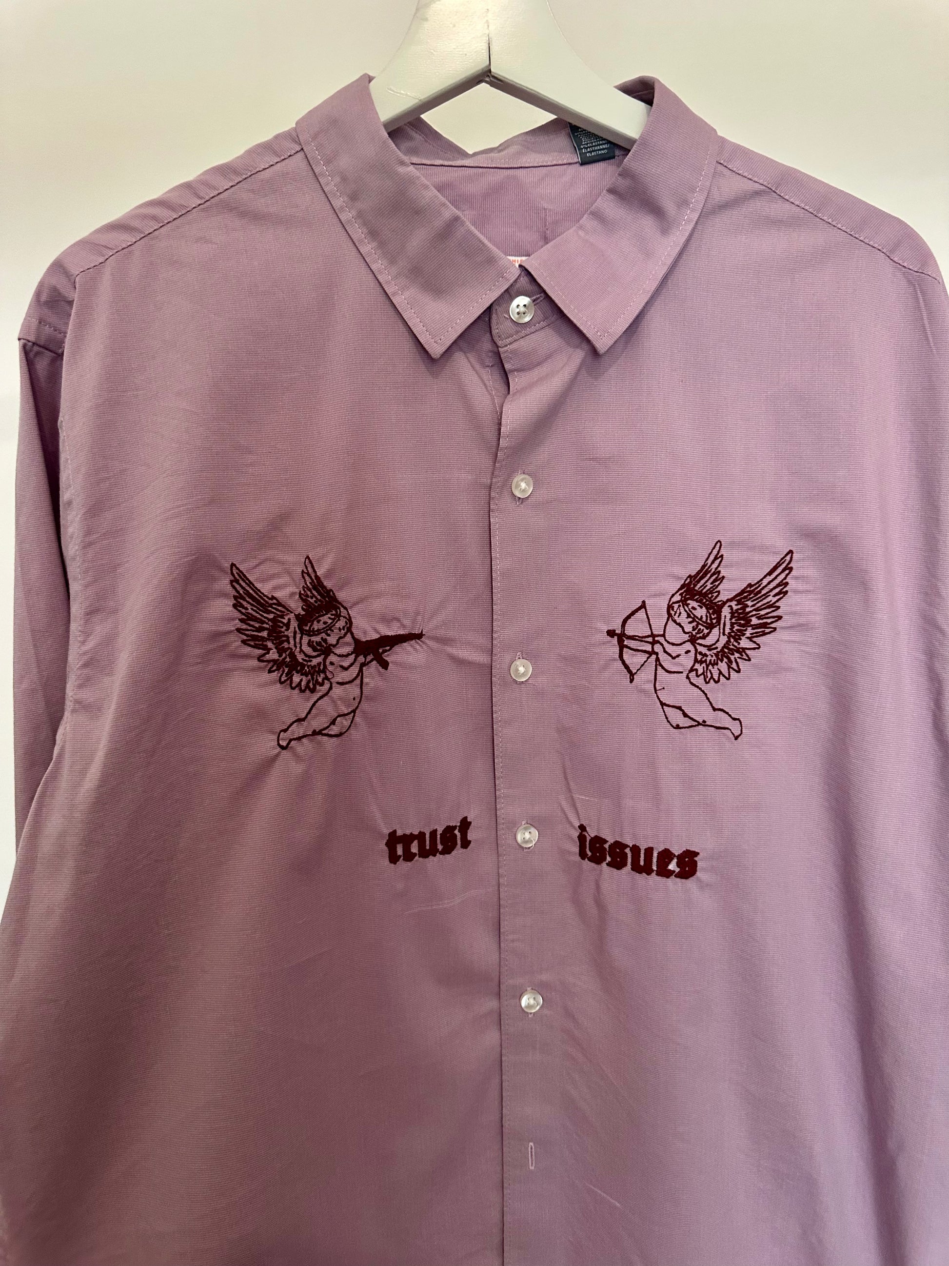 Rielaborazione con scritta "trust issues" e disegno angioletti sul fronte