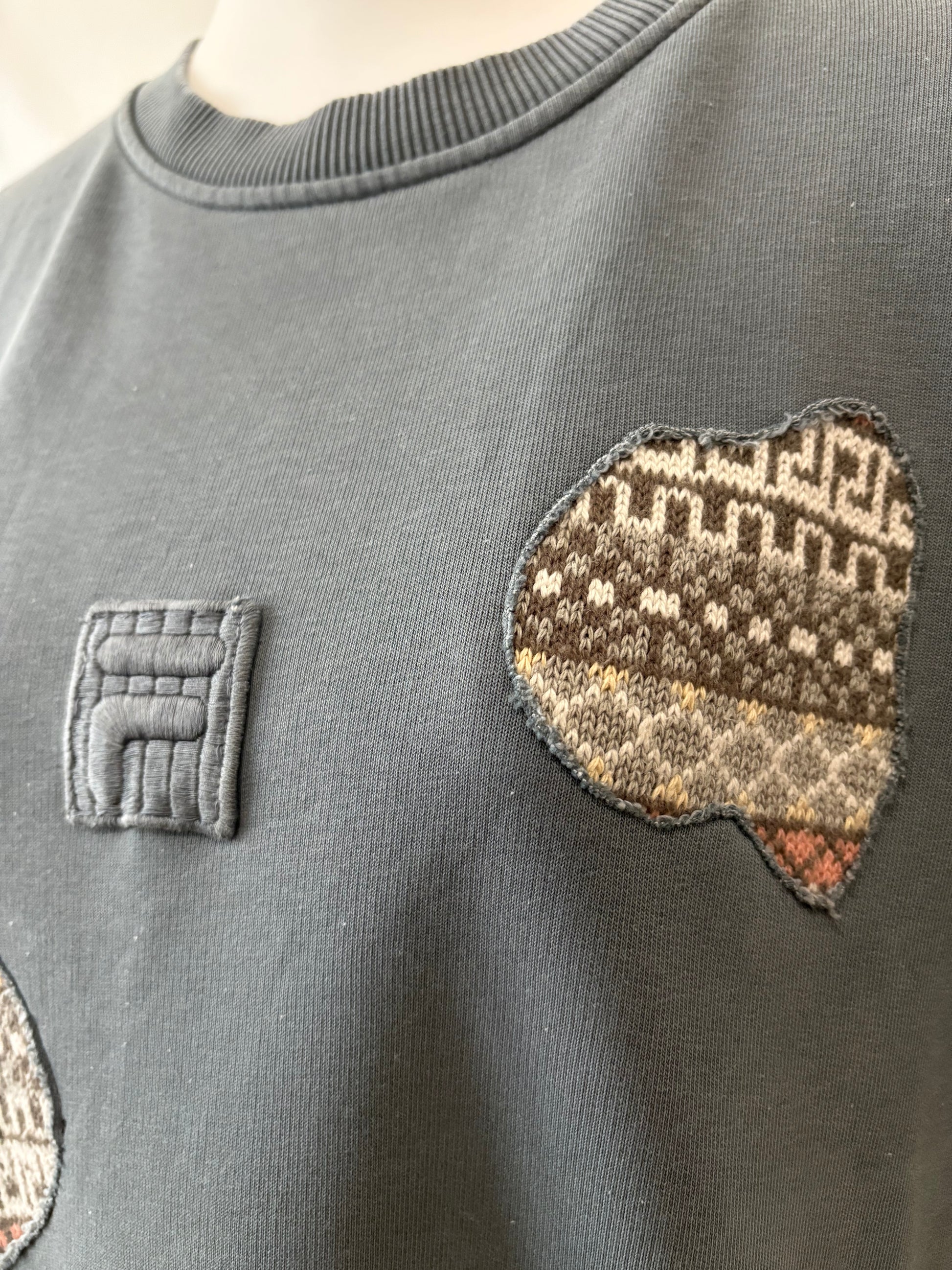 Rielaborazione fatta a mano con l'aggiunta di tessuto in cotone