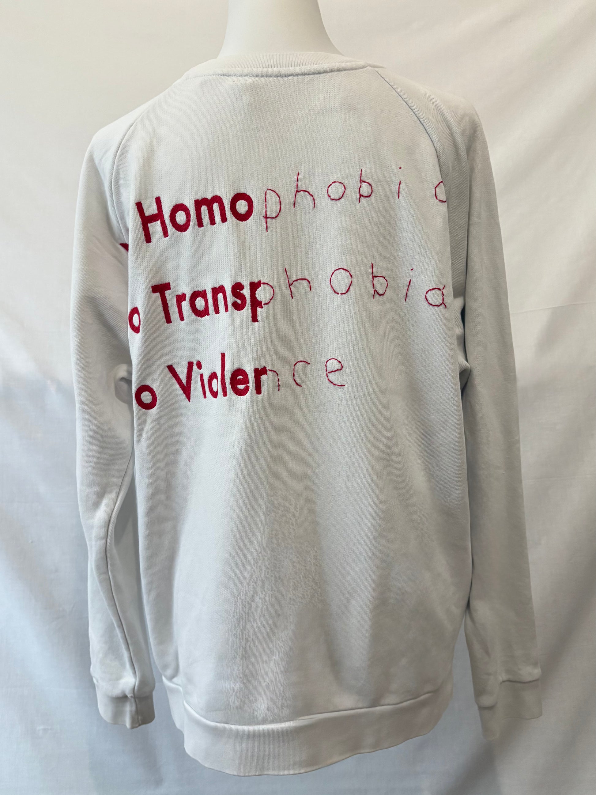 Rielaborazione con ricamo di scritte sul retro e sul fronte