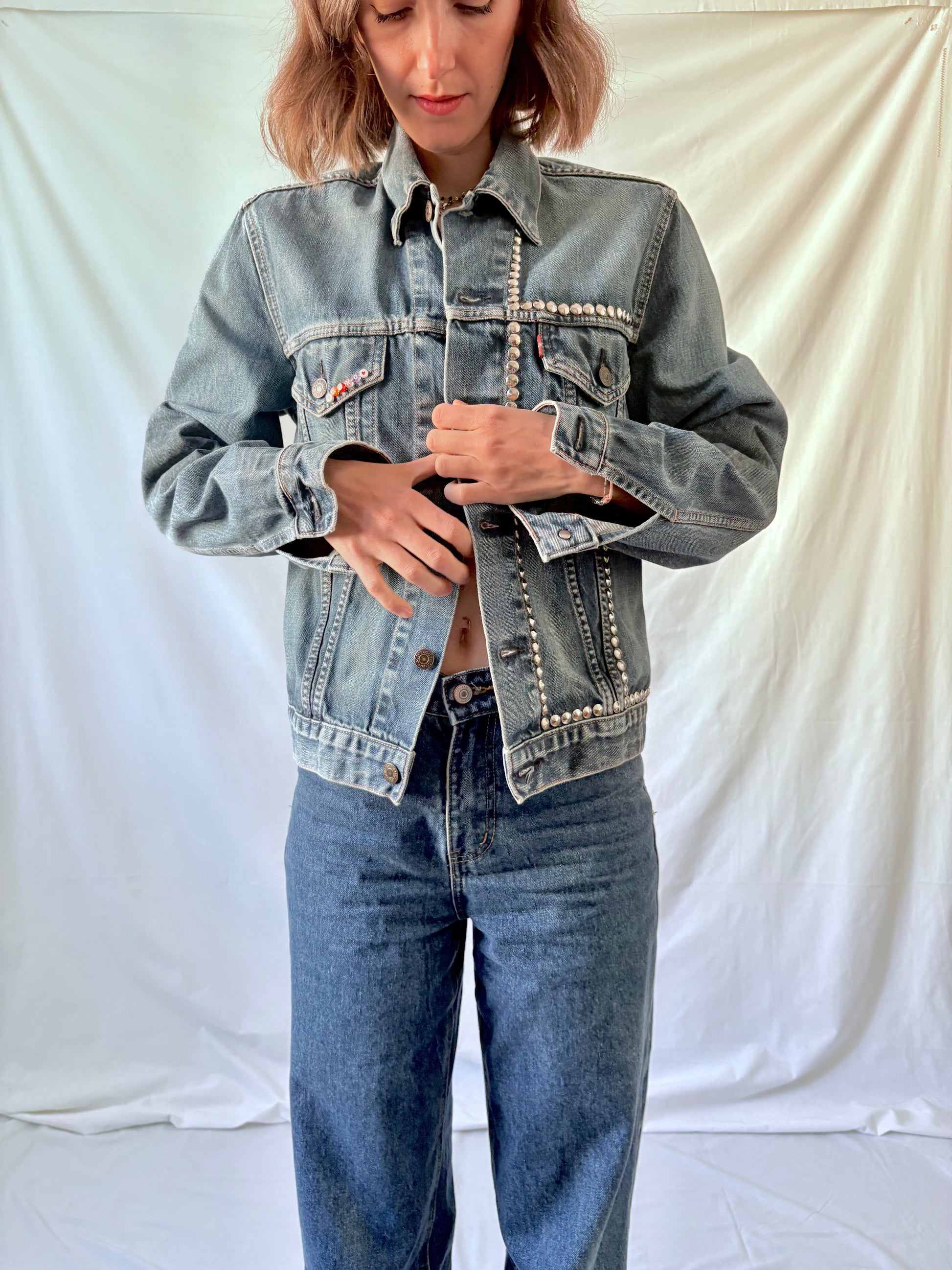 Rielaborazione fatta a mano con patch, disegni e borchie